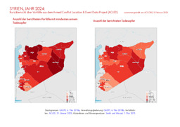Syria, year 2024: Update on incidents according to the Armed Conflict Location & Event Data Project (ACLED) (Landkarte oder Infografik, Englisch)