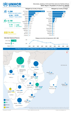 Regional Bureau for Eastern and Southern Africa; SADC Region; Population of concern to UNHCR as of 31-Dec-25 (Landkarte oder Infografik, Englisch)