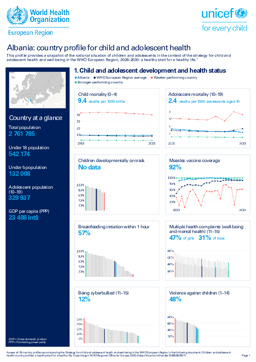 Albania: country profile for child and adolescent health (Map or infographic, English)