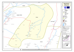 Omna district (Paktika province): Political map with administrative divisions (district level), settlements, water bodies and roads