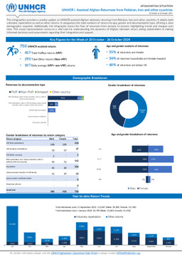 Afghanistan Situation; UNHCR; Assisted Afghan Returnees from Pakistan, Iran and other countries; 20 October to 26 October 2024